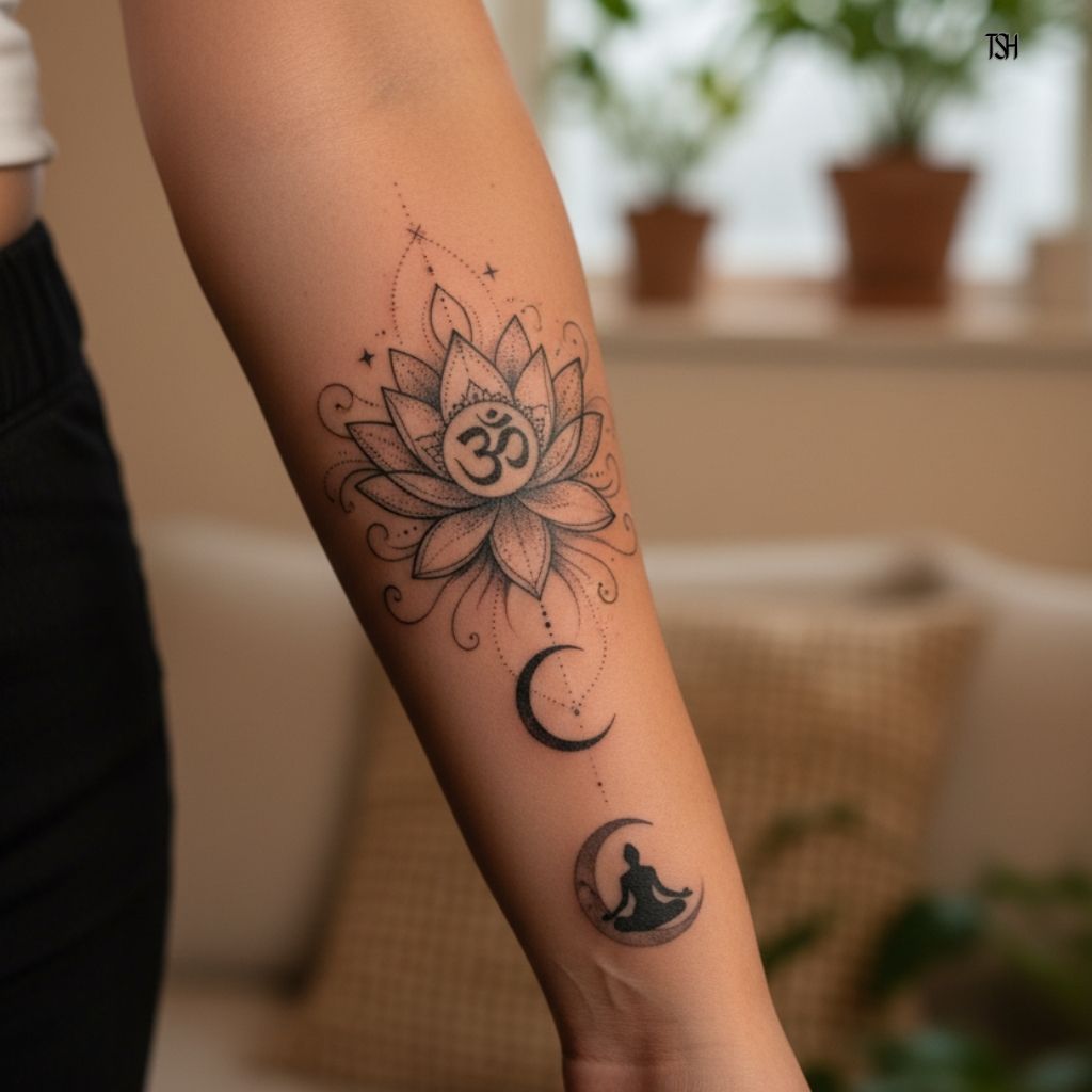 Tattoos of this nature are deeply personal and serve as reminders of their spiritual path and quest for enlightenment.