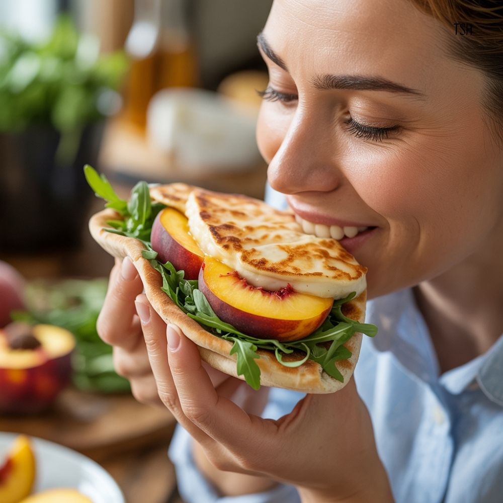 If you cannot find halloumi, you can use pan-seared tofu, grilled chicken slices, or even chickpeas tossed with olive oil and spices. If you don’t have peaches, use mango, strawberries, or thin apple slices.